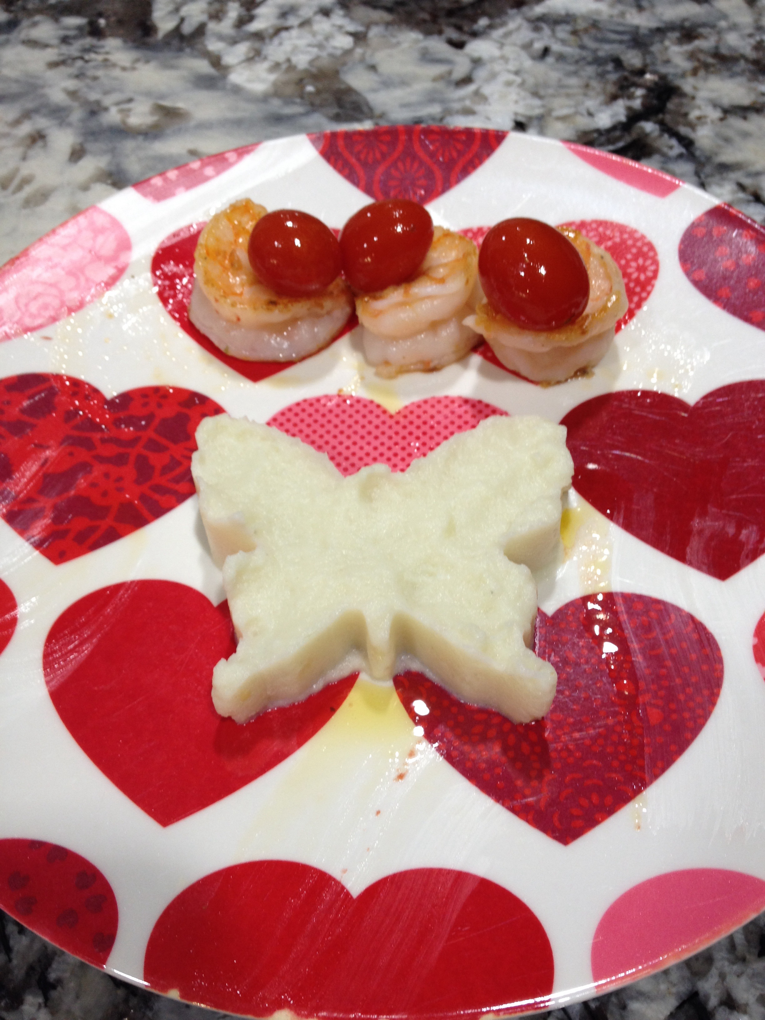 imageFor my husband and I, the plate looked a bit fancier as I took advantage of the wonderful flavors from the tomatoes to use as a light sauce.  As for my daughter, I tried to keep the foods as separated as possible.  I even made a butterfly out of the cauliflower. But, once she saw the shrimp, she immediately said “I’m not eating that“.  Sound familiar??  But, quick thinking led me to the ketchup bottle(sadly excluding the horseradish) and amazingly enough, she asked for seconds.  What, she wanted more shrimp?  Five whole shrimp (completely covered in ketchup) eaten by my five year old … Mission Accomplished!!!