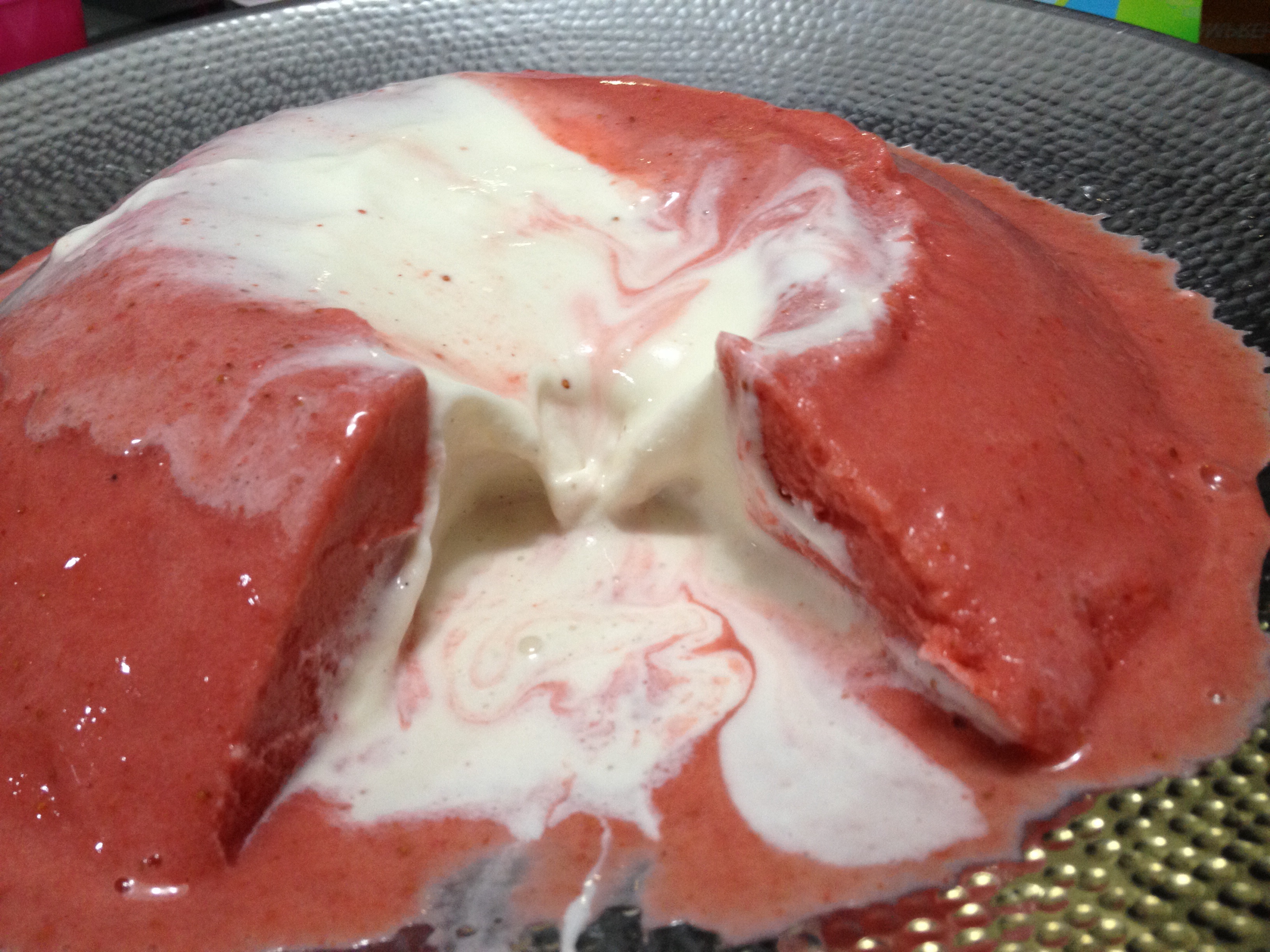 And the result, my “bomb” bombed– it looked messy and the center didn’t freeze enough(maybe it was the fact I used frozen yogurt instead of all ice cream) BUT, it tasted good!