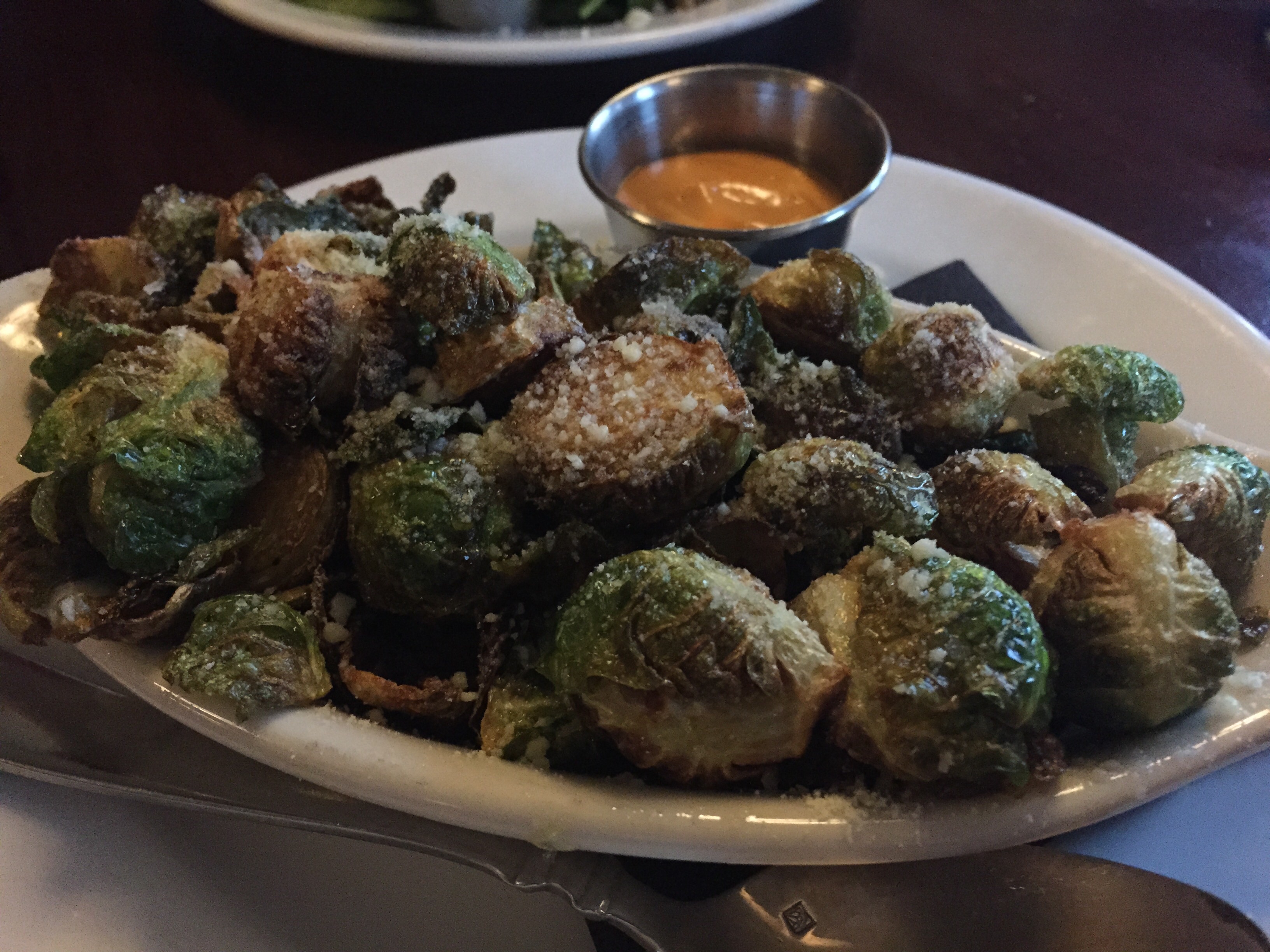 I arrived right after lunch and rather than eat at the airport(I think the only option was True Burger), I walked down the street from my hotel to Fong Pizza.  I was curious – a pizza place with an asian twist.  Unfortunately I arrived too late to get pizza by the slice but they offered a Chicken Thai pizza that sounded interesting.  I also didn’t want to ruin my appetite for dinner so I opted for Pizza Rolls, handmade in egg roll wrappers filled with pepperoni, Graziano sausage and mozzarella, served with a side of marinara.  Pizza in an egg roll wrapper…Yum!  Turned out to be good, something I would order again but if I return to Des Moines, I think trying an asian twist pizza is my first choice.