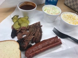 Brisket and Sausage and Corn and Cole Slaw