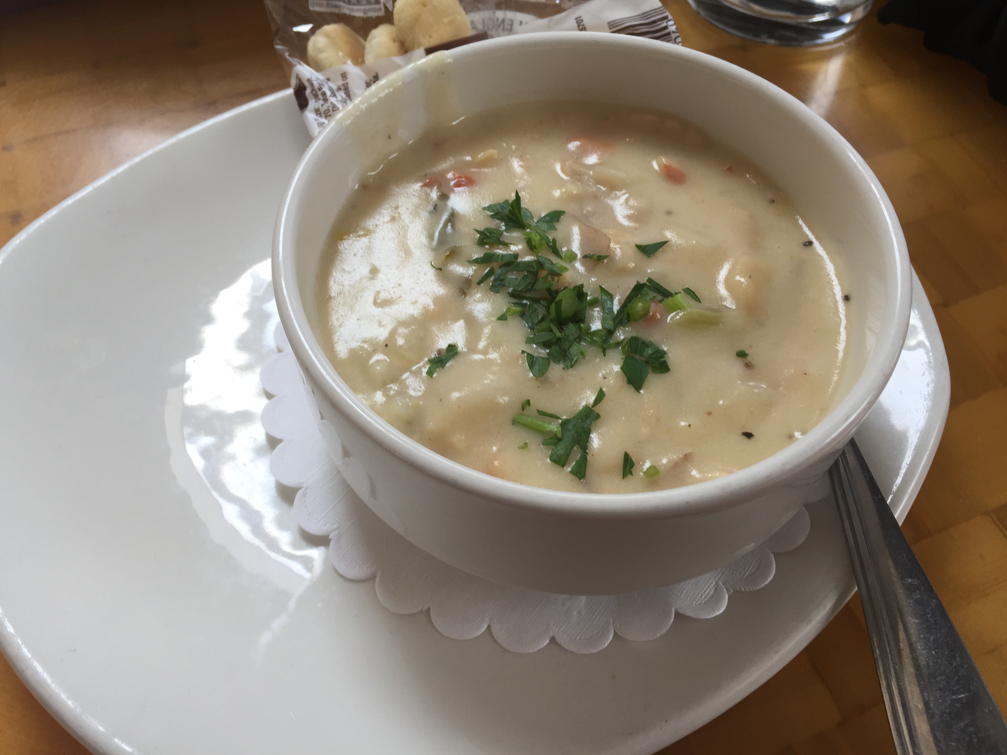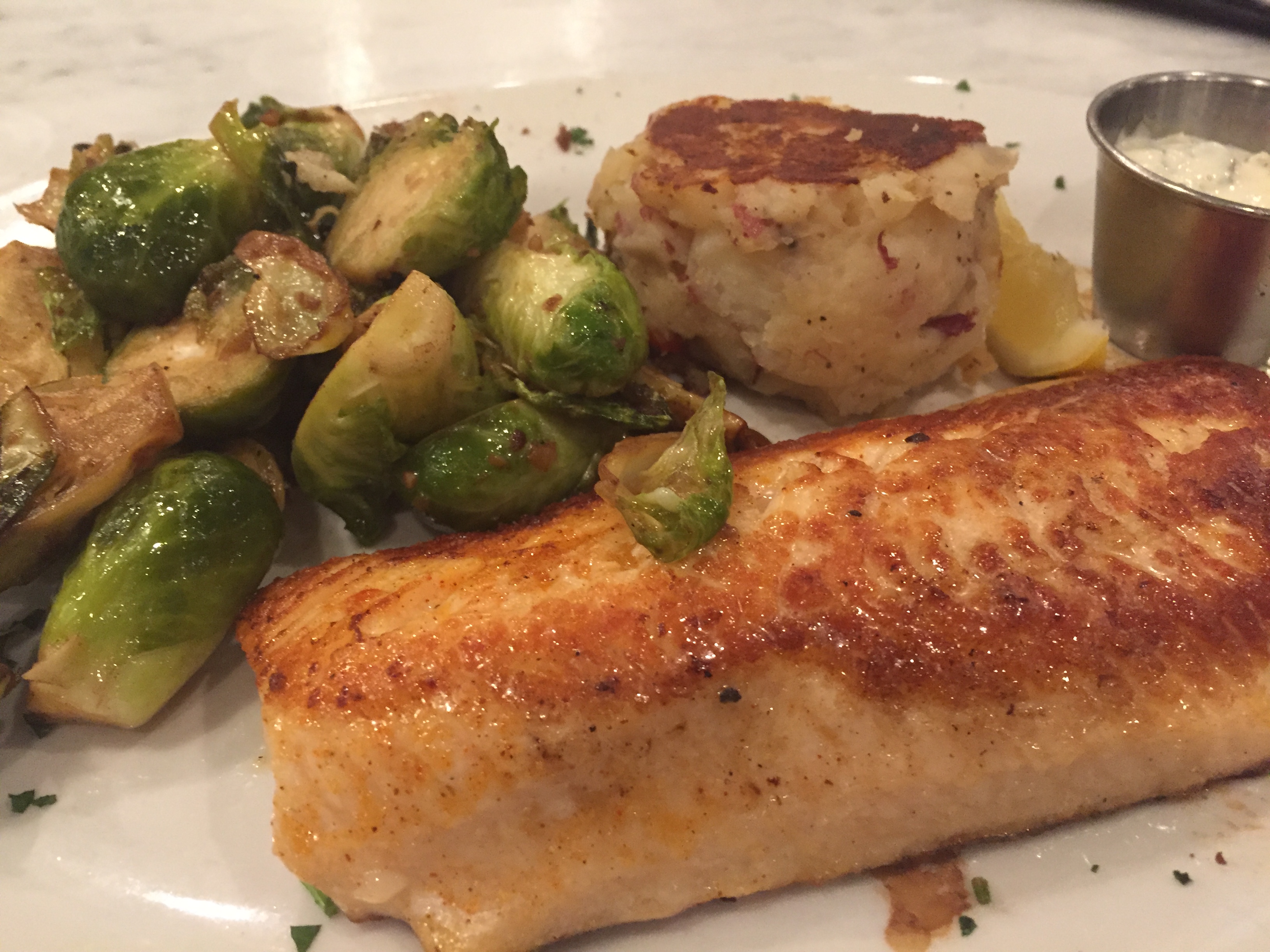 Second day in the office and got back to my hotel around 7pm. Again, too tired so I opted for something closer to the hotel and not as far as downtown. I went with whatever the server recommended…and all of it was quite good. New England clam chowder, Arctic Char with brussel sprouts and a potato cake and the Fresh Squeezed Lure Martini.