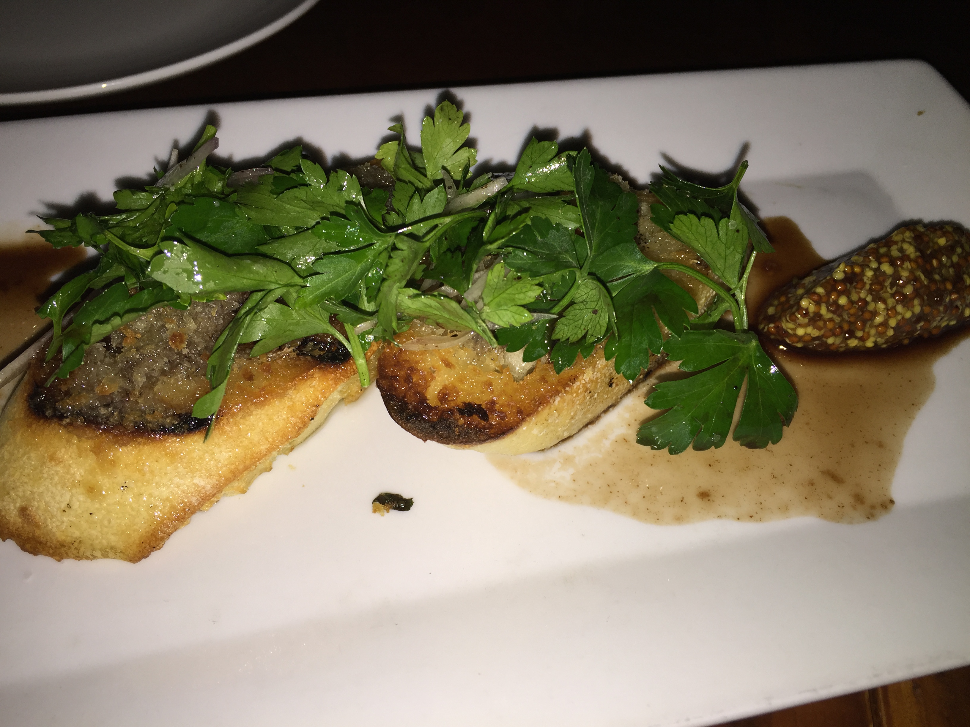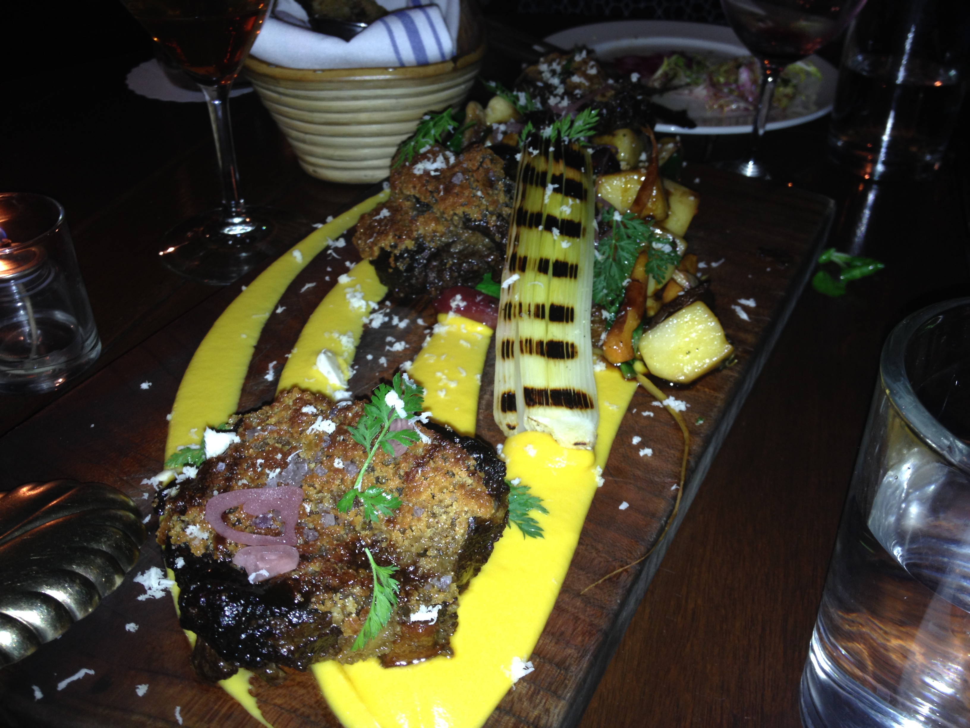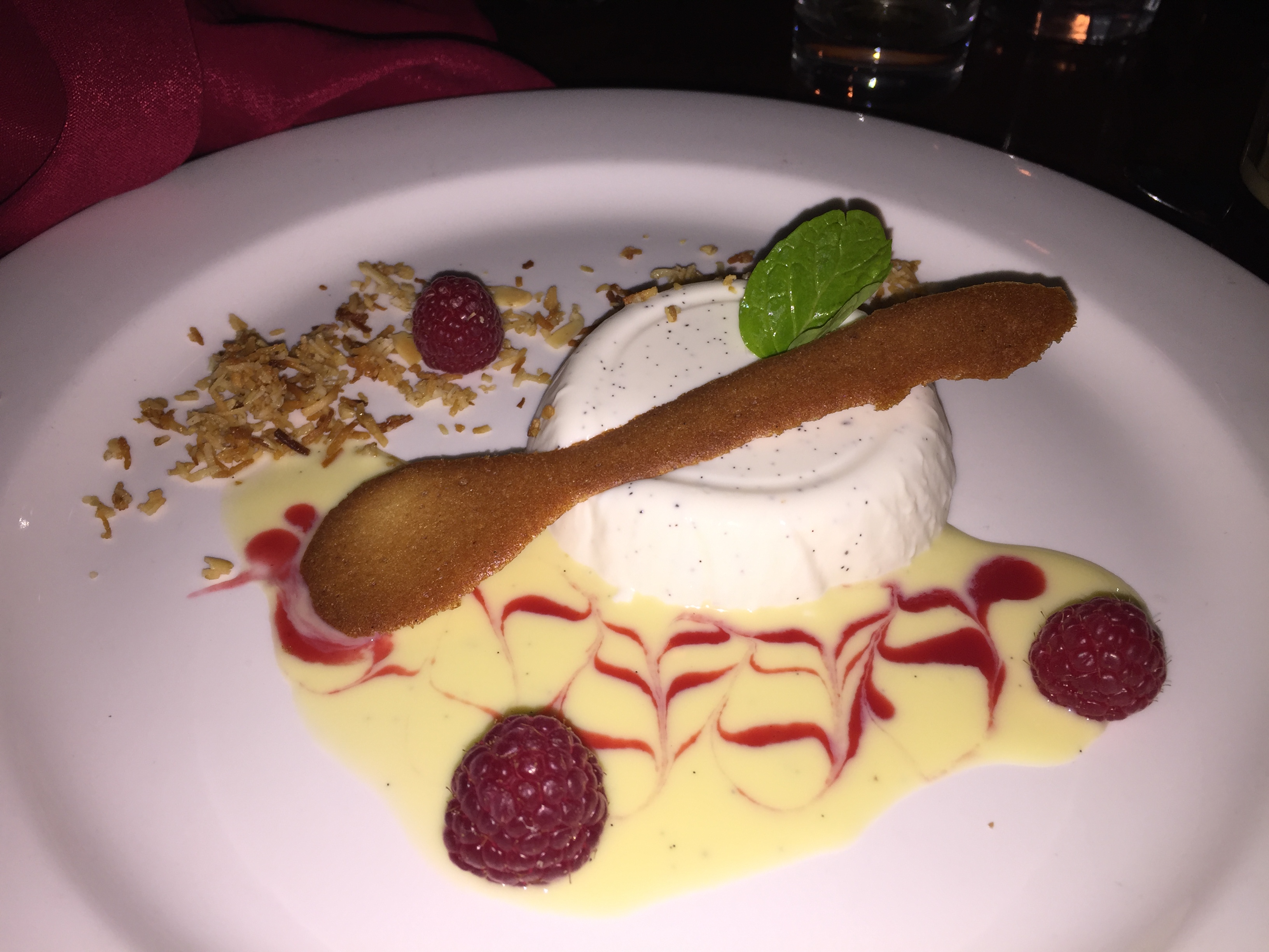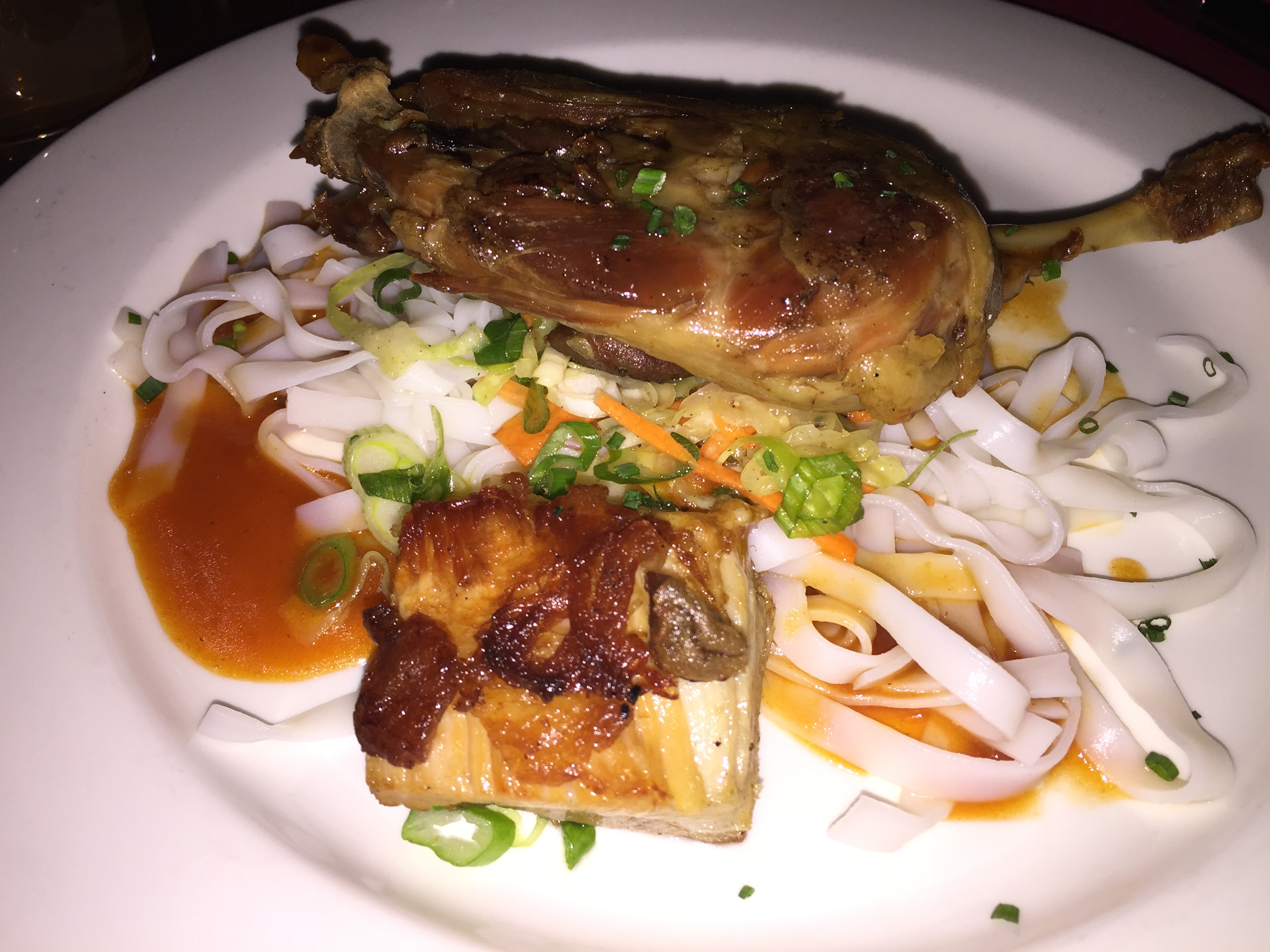 I love when I walk into a restaurant and I get a great feeling. I was there with 4 other ladies and I knew we were going to have a fun night. It all started with a very sassy server when he added in some hand and hip action while reviewing the specials of the night. The smiles and laughter continued. We started by sharing some appetizers – the sweetbreads, the bone marrow crostini and the brussel sprouts. I then ordered the duck special for dinner – Duck confit with pork belly, egg noodles, Carmelized fish sauce and citrus infused cabbage. WOW…delicious! I guess we were such a fun table that they also brought us out some desserts to try – rice pudding and panna cotta!